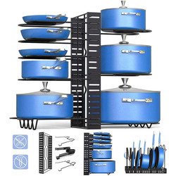 Organizador de macetas ajustable, 8 soportes de Metal para armario de cocina, despensa, sartén, tapa