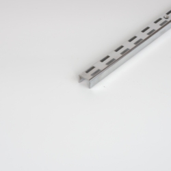 Colonna lunga a doppio foro in metallo cromato a doppio canale con intaglio a parete verticale per staffa a scaffale