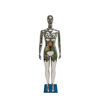Manichino da donna in oro cromato per tutto il corpo con testa d'uovo